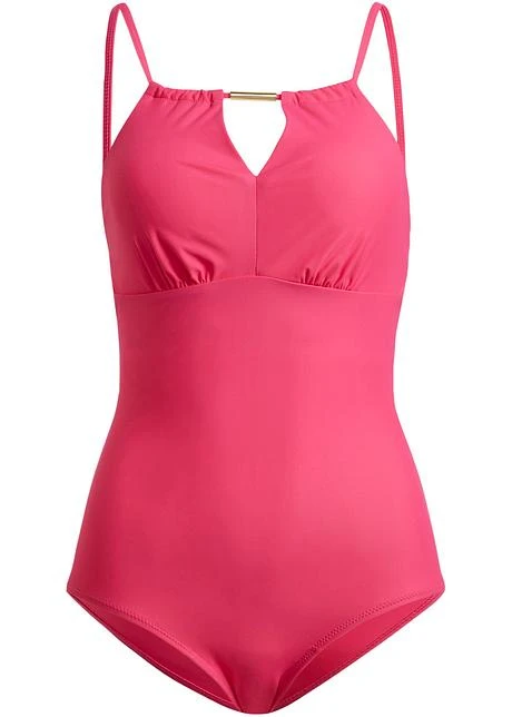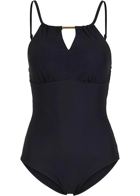 Maillot 1 pièce avec effet sculptant. En matière gainante amincissante. Bretelles réglables. Coques souples amovibles, doublure poitrine et bande élastique sous poitrine.Doublure modelante.