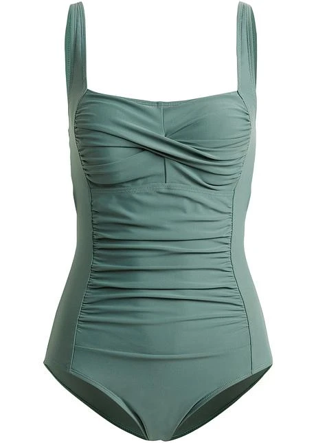 Dans la sélection de Maite Kelly : la matière gainante de ce maillot de bain 1 pièce de bpc procure un ajustement optimal. L’effet sculptant dessine une silhouette harmonieuse. Ce maillot 1 pièce avec fronces et décolleté style cache-cœur est très agréable à porter grâce à ses coques souples intégrées. La doublure modelante et la coupe spéciale font de ce maillot de bain un modèle sensationnel. Ce maillot 1 pièce s’ajuste à chaque silhouette grâce à ses bretelles réglables.