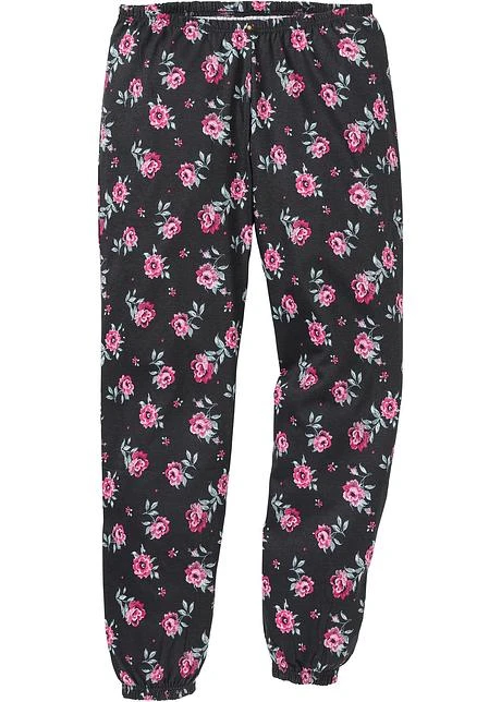 Haut de pyjama avec décolleté bordé d’un galon en dentelle décorative. Pantalon de pyjama à joli imprimé floral. Taille et bas de jambes avec finitions élastiques.