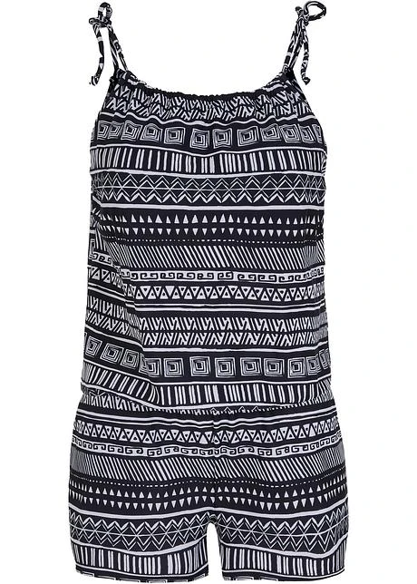 Maillot de bain combishort à imprimé all-over. Bretelles réglables, à nouer sur les épaules. Coques souples amovibles avec doublure poitrine et bande élastique sous poitrine. Élastique coulissé sur les hanches. Short avec poches latérales.