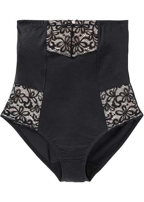 Slip de la marque Nice Size conçu dans une matière à effet amincissant au niveau de la taille et du ventre. Des coutures renforcées sur la ceinture abdominale offrent un soutien supplémentaire. Les empiècements en dentelle à la taille et à l’échancrure ajoutent une touche élégante. Gousset en coton.