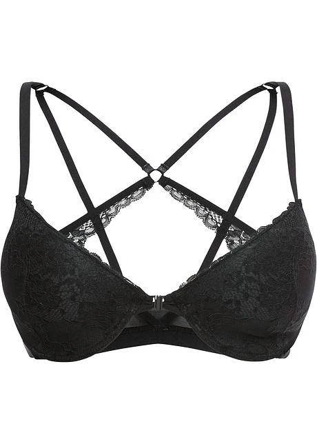 Joli soutien-gorge stylé à coques avec une finition originale au dos. Ouverture sur le devant.