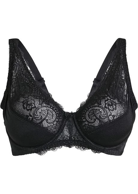 Soutien-gorge élégant et séduisant avec empiècements semi-transparents en dentelle sur le haut des bonnets se prolongeant jusque sur les bretelles. La coupe spéciale réduit visuellement votre tour de poitrine d’une taille de bonnet. Avec armatures pour un joli décolleté. Bretelles réglables et fermeture dos proportionnellement plus larges pour les plus grandes tailles de bonnets.